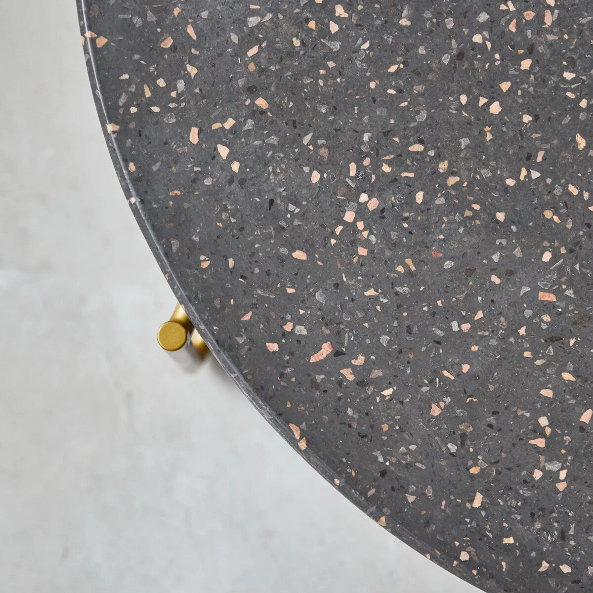 Très originale et pleine de personnalité, la table basse en laiton et terrazzo 80 Anatole grey, combine avec brio esprit très actuel, design minimaliste et lignes tout en rondeur.