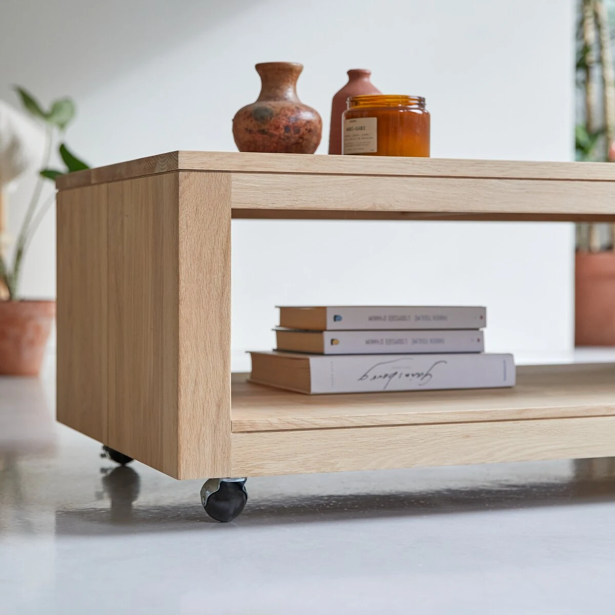 La table basse en chêne Anoa Oak combine modernité et charme intemporel : on aime la sobriété de sa ligne contemporaine, la blondeur de son bois massif, la géométrie de ses proportions et le côté tellement pratique de ses roulettes ! Une table basse qui accompagne tous les beaux moments de notre vie, année après année.