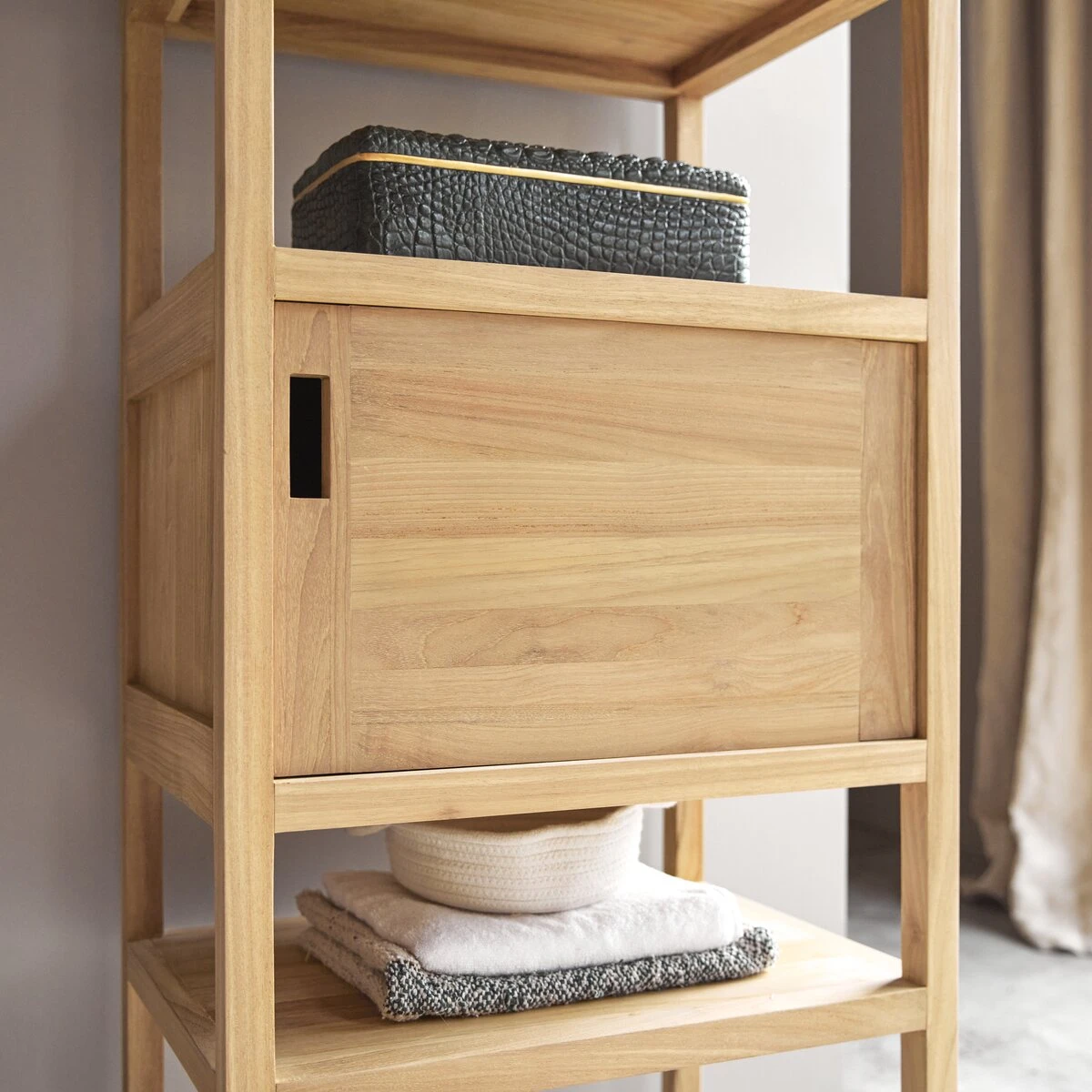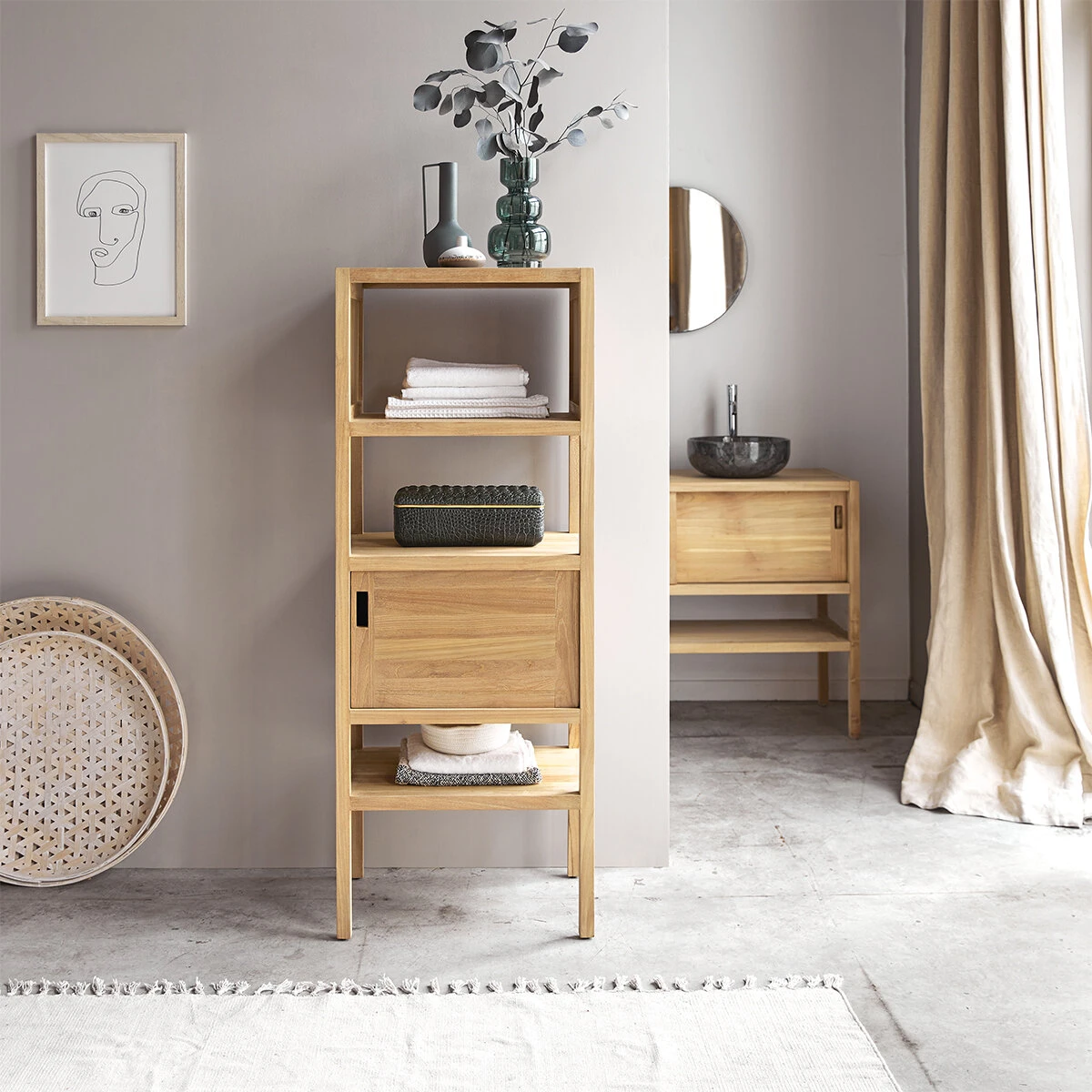 Conçue pour résister parfaitement à l’humidité, la colonne en teck Arty trouve également sa place dans votre salle de bain, seule ou associée au meuble sous vasque.