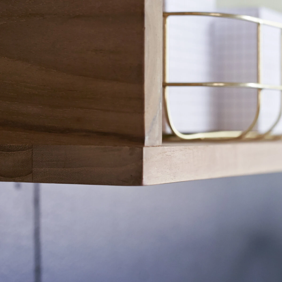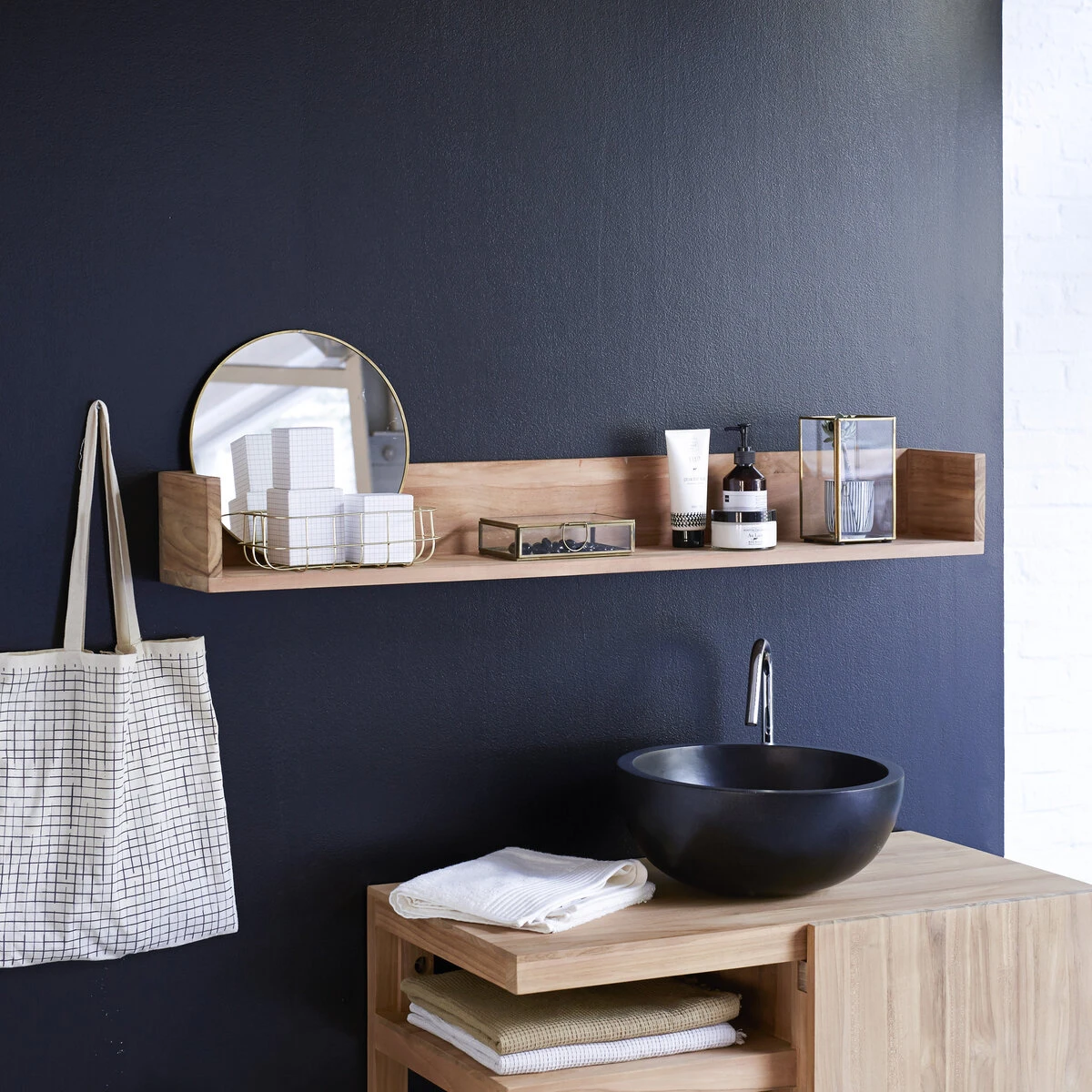 Astucieuse et graphique, l’étagère murale en teck massif certifié FSC® Arty reçoit tous ces jolis flacons qu’on accumule dans la salle de bain ou la salle d’eau. Elle reçoit avec autant de réussite des objets de déco ou des indispensables comme le dentifrice, la brosse à dents ou le peigne à cheveux.