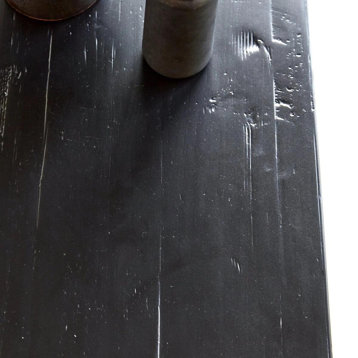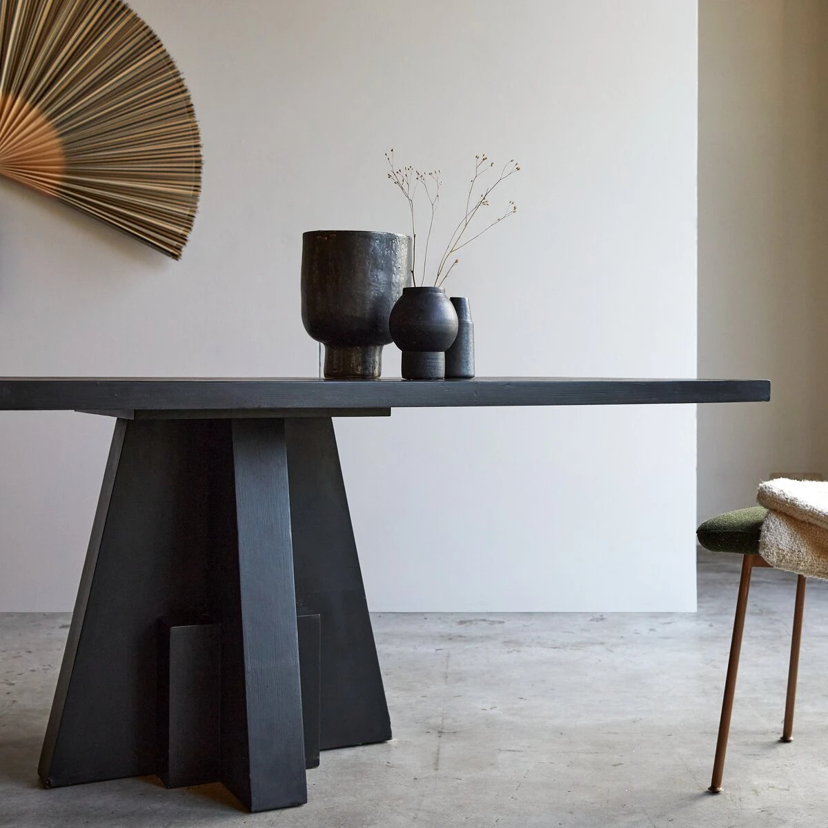 Ici, on s’affranchit des codes classiques de la décoration intérieure pour inventer un meuble aux lignes radicales et sans concession. Inspiré des meubles traditionnels ethniques, l’esthétique est à l’emporte-pièce, la finition « noir charbon » volontairement intense.