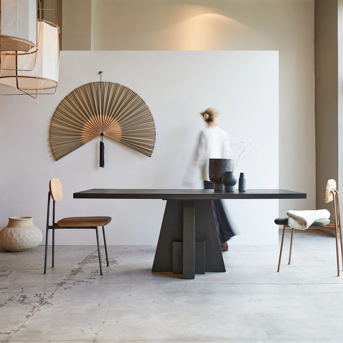 Graphique comme une œuvre d’art, la table en pin recyclé Aya joue avec talent l’upcycling (recyclé vers le « haut ») et l’esthétisme sans fioriture. Elle permet d’accueillir 8 convives autour d’un pied central très visuel.