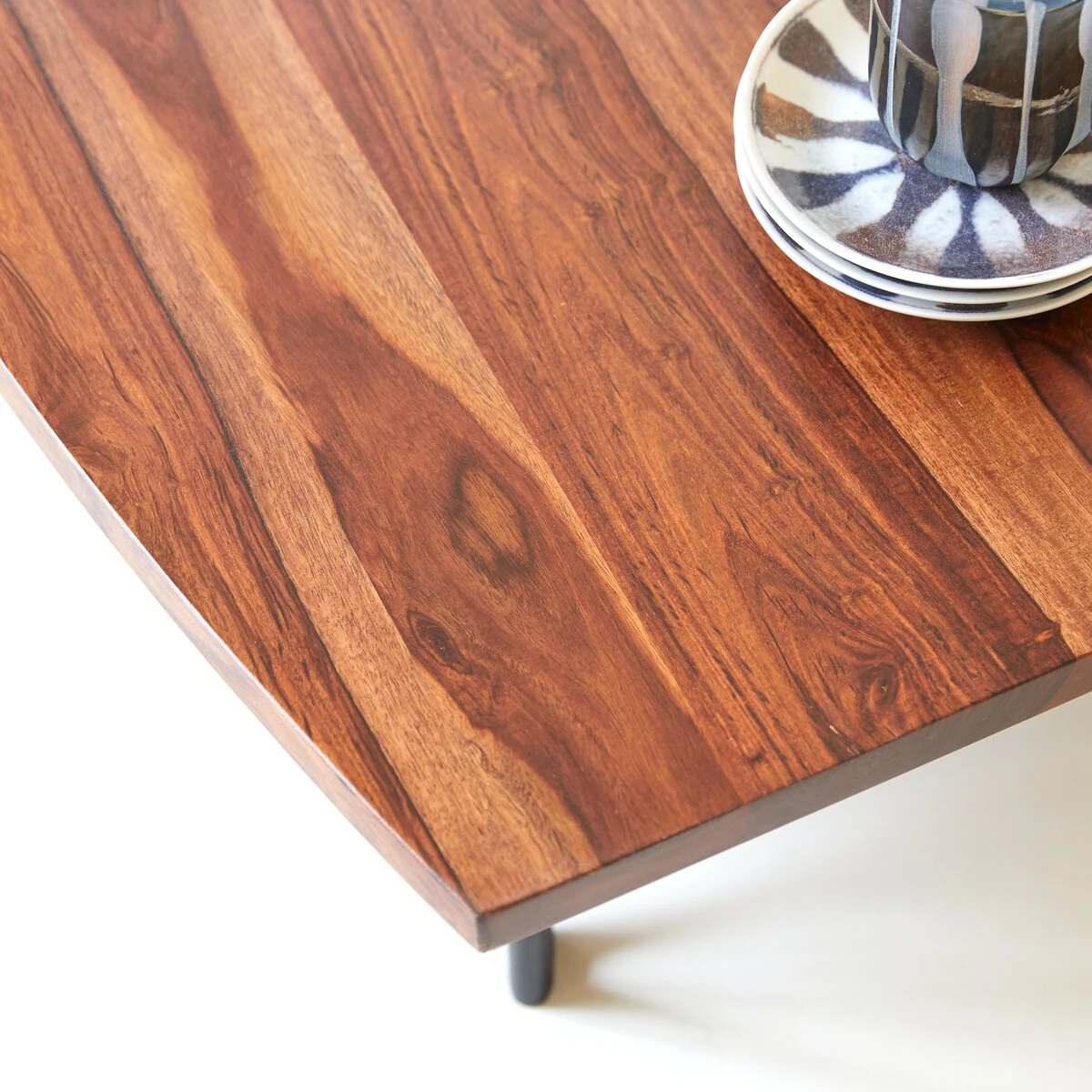 Non seulement la table basse en sheesham Bonnie double plateau affiche des lignes contemporaines tout à fait dans la tendance déco actuelle, mais elle offre en plus la chaleur d’un bois massif aux superbes nuances et l’esprit graphique de pieds en métal.