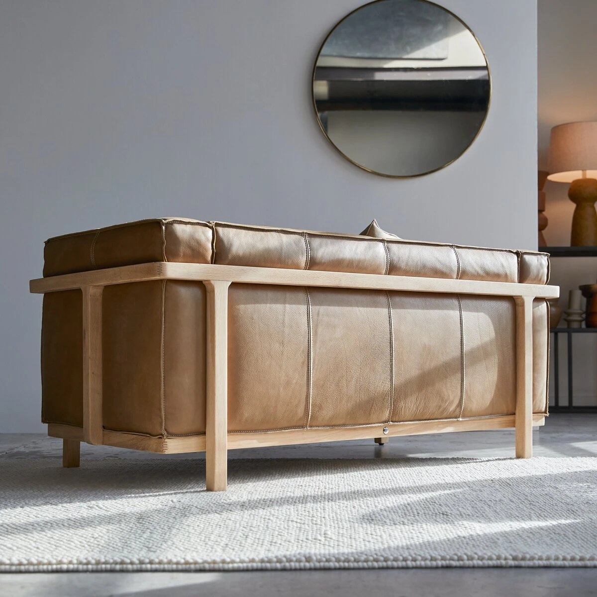 Vous apprécierez son cuir cheyenne aux coutures très visuelles “reverse stitch” et le piétement en chêne massif brut. Typiquement, un meuble qu’on aime pour très longtemps : plus il vieillit, plus il peaufine sa personnalité…