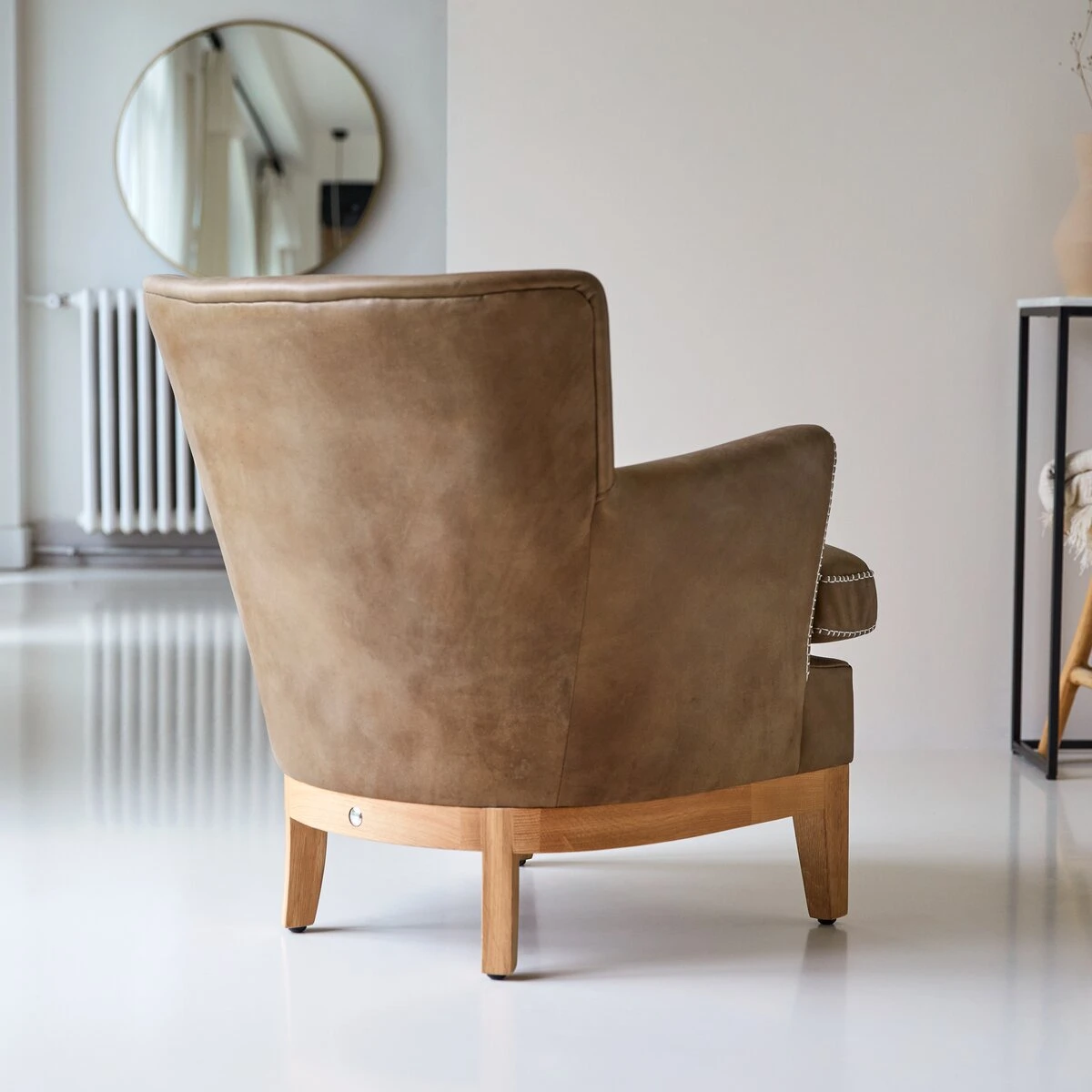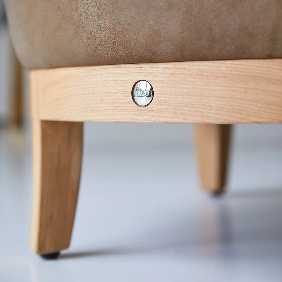 Le fauteuil Comoc Bleu Nature combine un petit air vintage tout à fait dans l’air du temps, des lignes accueillantes et confortables et de belles matières : le cuir finition cheyenne et le chêne massif brut.