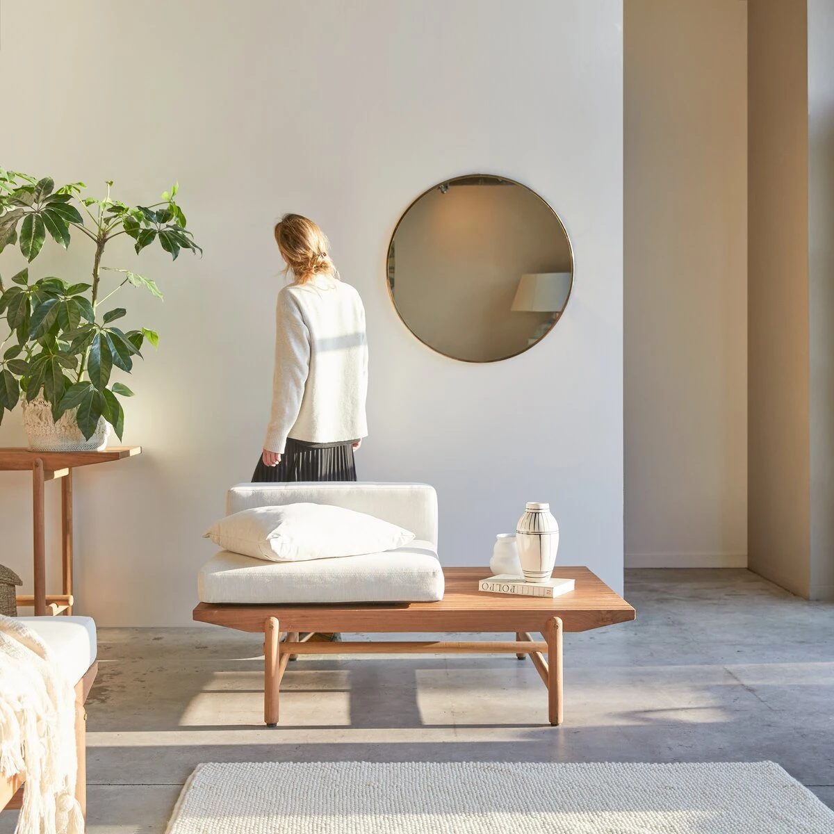 Une nouvelle façon d’envisager le salon : la banquette 1 place en teck massif Fado fait entrer l’esprit outdoor dans votre intérieur ! La tendance In & Out qui consiste à créer des meubles qu’on installe à l’intérieur comme à l’extérieur, est plus que jamais d’actualité : cette banquette premium en fait une évidente démonstration ! Travaillée dans un très beau bois verni, réputé pour ses qualités de résistance aux incidents du quotidien, à l’usure et aux intempéries, elle a fait l’objet de beaucoup de soins et ce, à toutes les étapes de fabrication. Résultat, le plan latté du plus bel effet, les finitions de qualité, les coussins déhoussables et lavables en machine et la visserie en laiton. Associée à la table basse Fado et à la banquette 2 places Fado, elle compose un salon plein de charme qui invite à l’évasion… un espace de détente modulable : vous installez les coussins comme vous en avez envie, le confort sera toujours au rendez-vous.
