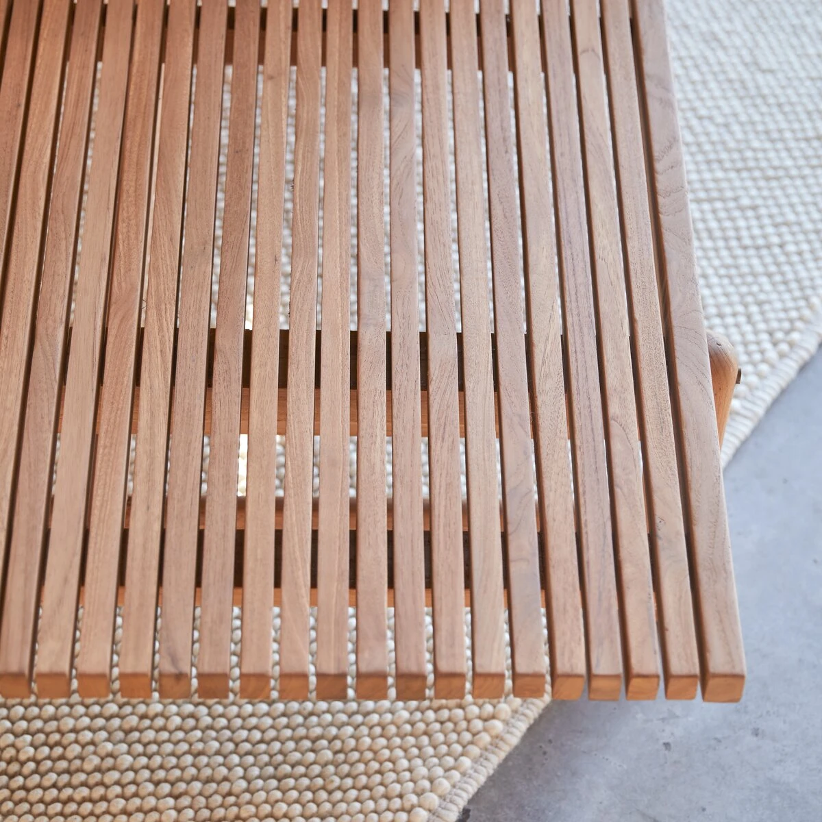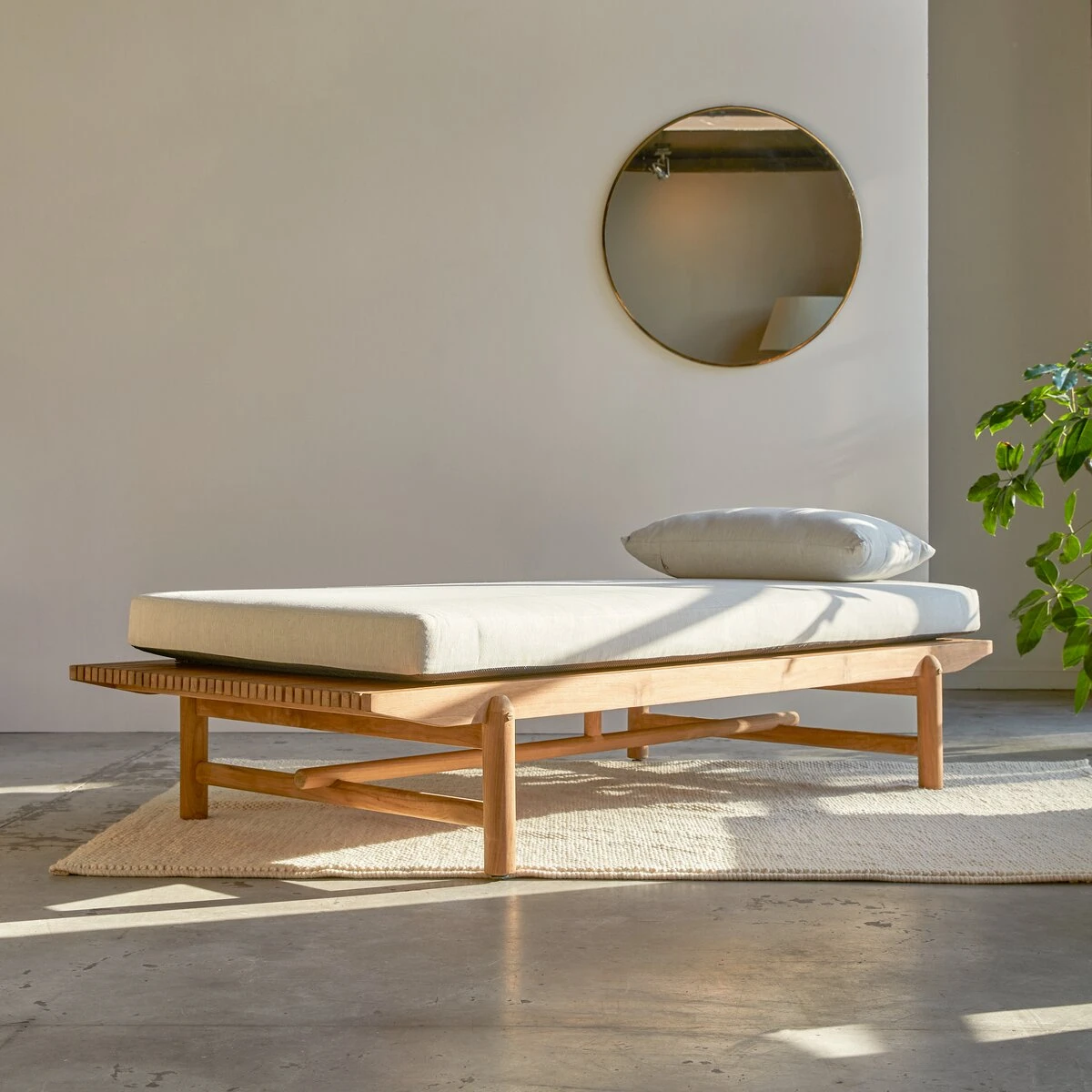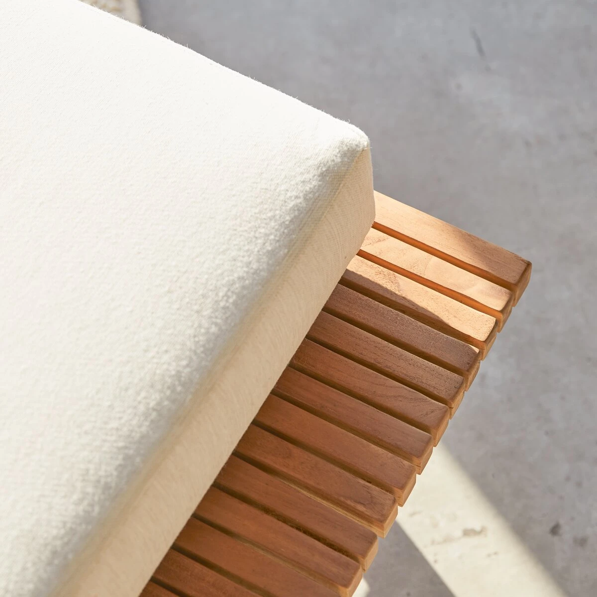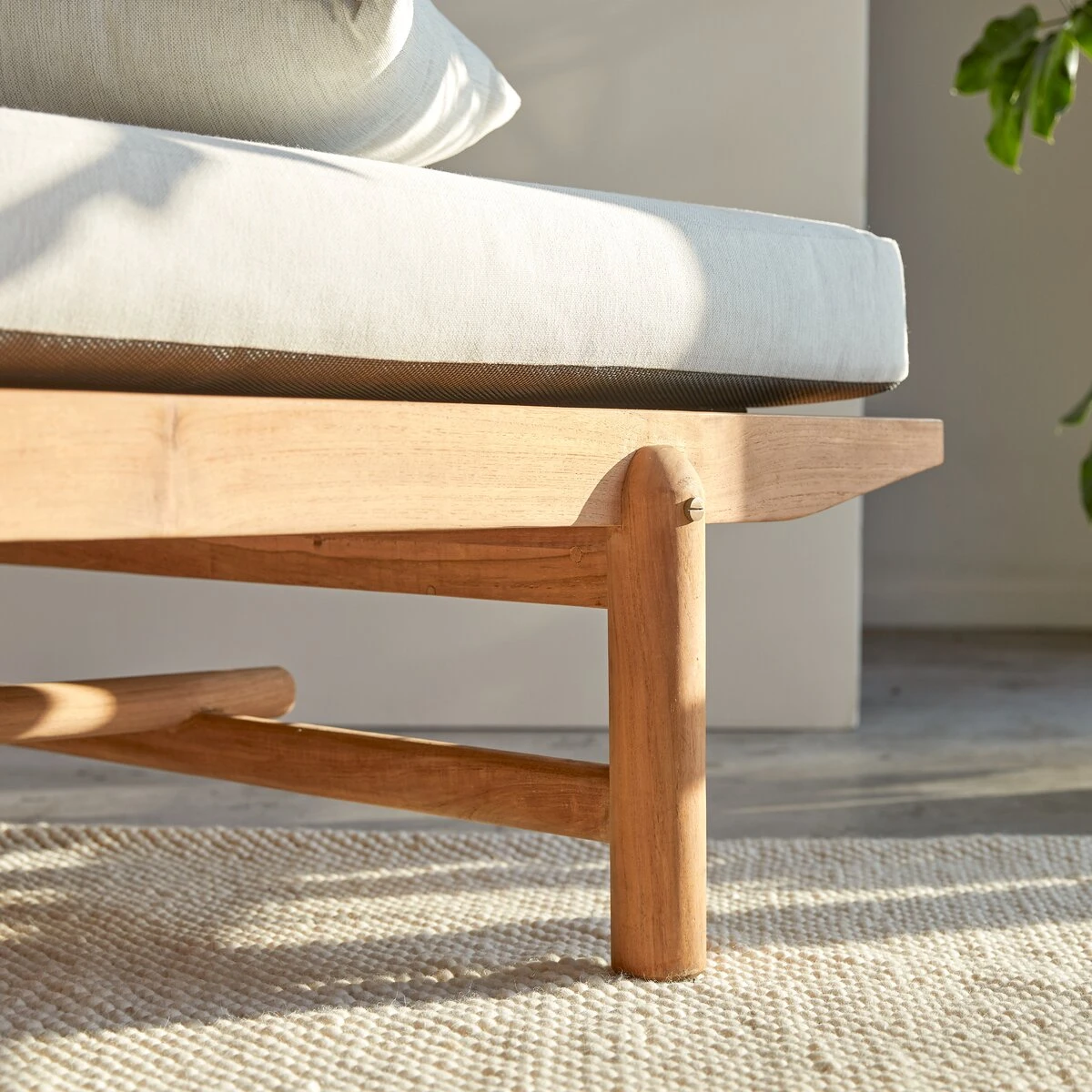 Parfaite au salon pour profiter d’instants bien-être, la méridienne en teck massif Fado trouve aussi naturellement sa place sur la terrasse ou le balcon : elle est, en effet, résistante aux intempéries. Ponctuellement, on s’en servira aussi de lit d’appoint.