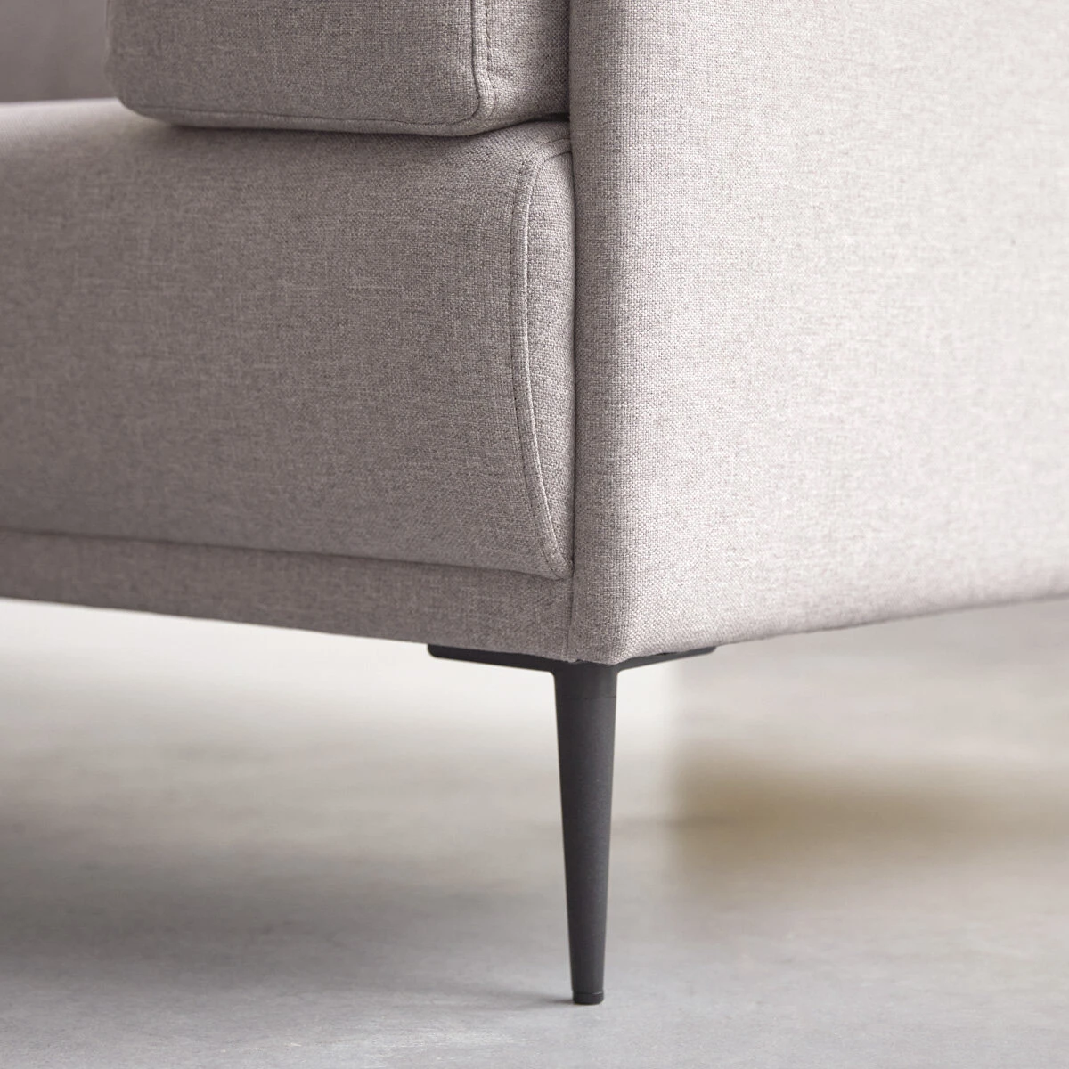Une belle sobriété couplée à un coloris gris naturellement élégant, le canapé Finn a vraiment tout pour séduire ! Bien spacieux, il est aussi très confortable et métamorphosable à souhait : il suffit tout simplement de ne pas poser les deux coussins accoudoirs pour bénéficier d’un canapé à l’allure ultra-minimaliste… et de les ajouter pour un canapé plus cosy. Travaillé dans un tissu certifié OEKO-TEX®, ce qui garantit l’absence de substances ou de produits chimiques nocifs, il est équipé d’élégants pieds en métal, suffisamment hauts pour permettre au balai de se glisser sous le meuble.