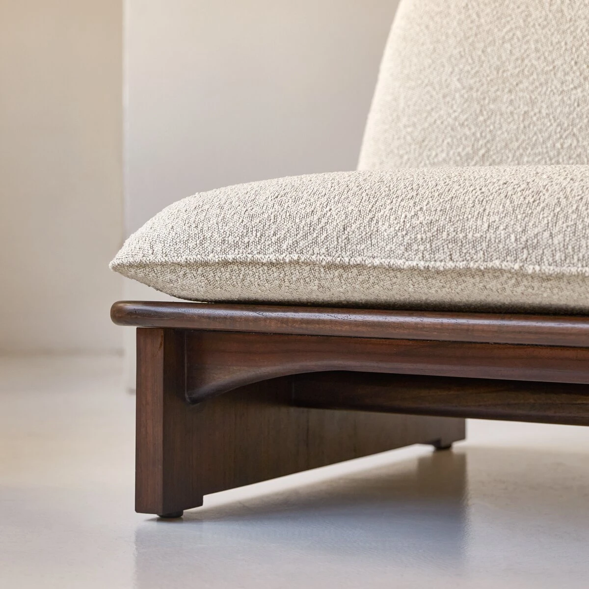 Dans le salon, on associe la banquette Folk en mindi massif et tissu bouclé à un ou deux fauteuils Folk assortis. On peut aussi le combiner à des fauteuils existants, son coloris écru et la simplicité de sa ligne autorisent toutes les associations de style… Il peut aussi composer à lui seul le meuble unique et singulier d’un salon aux accents ethniques.
