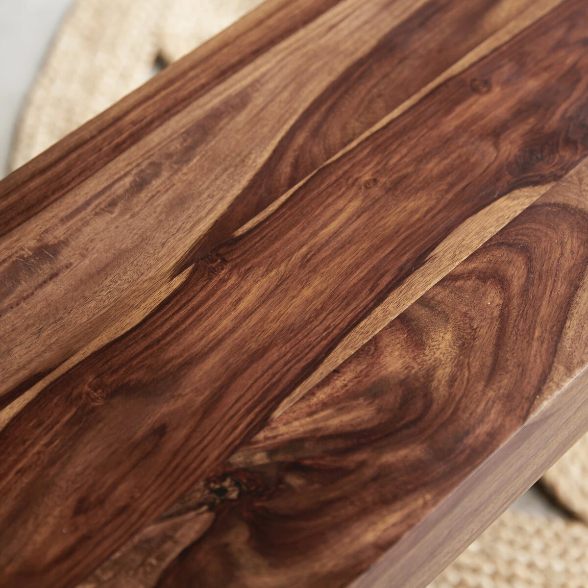 Le banc en palissandre massif 135 Helga affiche sobriété de lignes et esprit atelier. Vous aimerez aussi le bois veiné très visuel et l’originalité des pieds fins en métal. On le marie à la table en palissandre Helga pour composer un coin repas dans l’air du temps. On peut également lui confier une autre vocation comme console dans le salon ou la véranda, banc de vestiaire dans l’entrée ou le couloir, bout de lit dans la chambre.