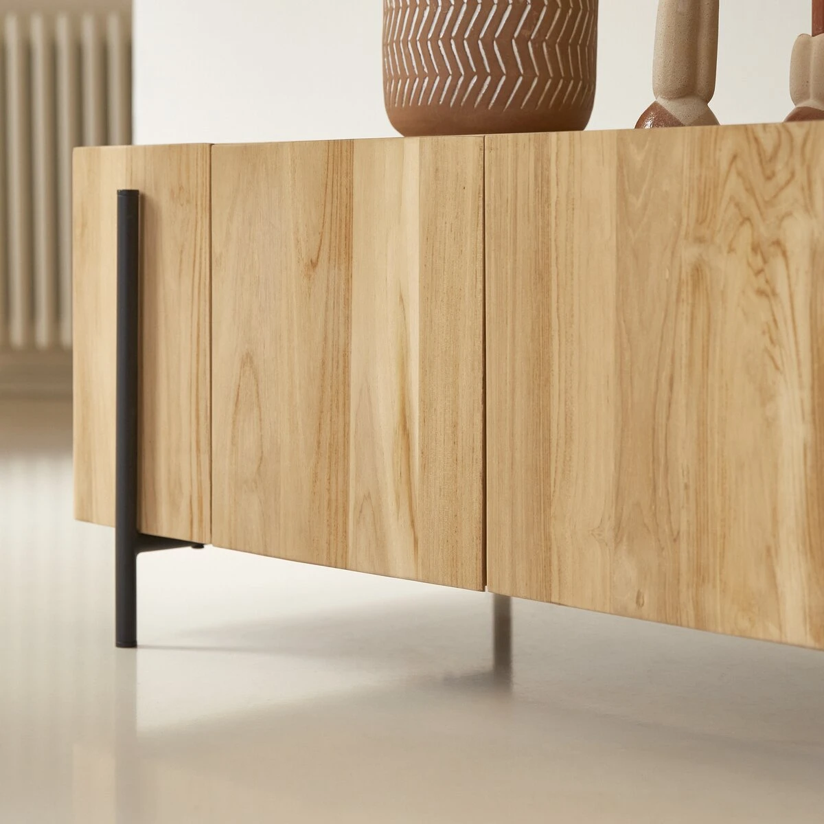Le meuble bas en teck Honorine trouve sa place partout dans la maison : au salon pour accueillir le téléviseur et ses accessoires, au séjour pour ranger le linge de table ou la vaisselle… la blondeur de son bois et sa ligne minimaliste autorisent toutes les associations.