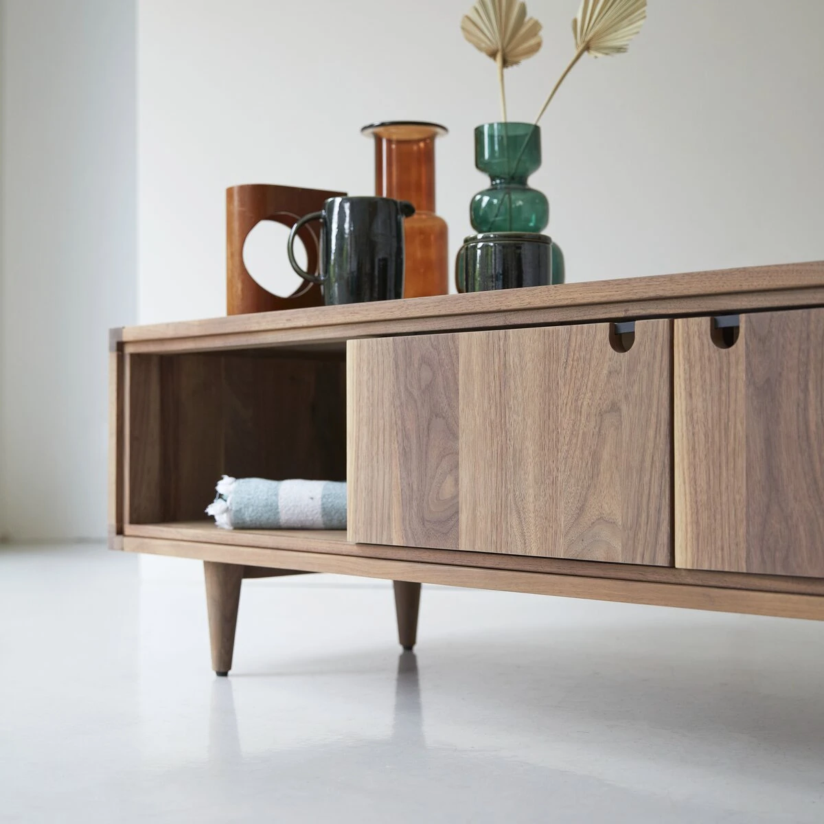 Le banc TV en noyer Jonàk s’intègre parfaitement à la collection scandinave Tikamoon. Il existe dans différentes essences de bois : notre collection Jonàk.