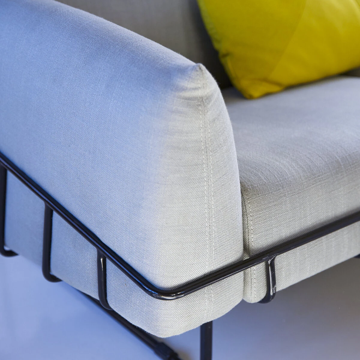 Ses lignes généreuses, la personnalité de sa structure en métal… tout concourt à en faire un meuble parfait : piétement graphique, assise ultra confortable, tissu peu salissant. Le plus difficile est de ne pas y rester allongé toute la journée… Ses proportions accueillantes sont les alliées de vos soirées en famille ou entre amis.