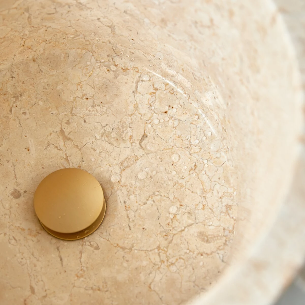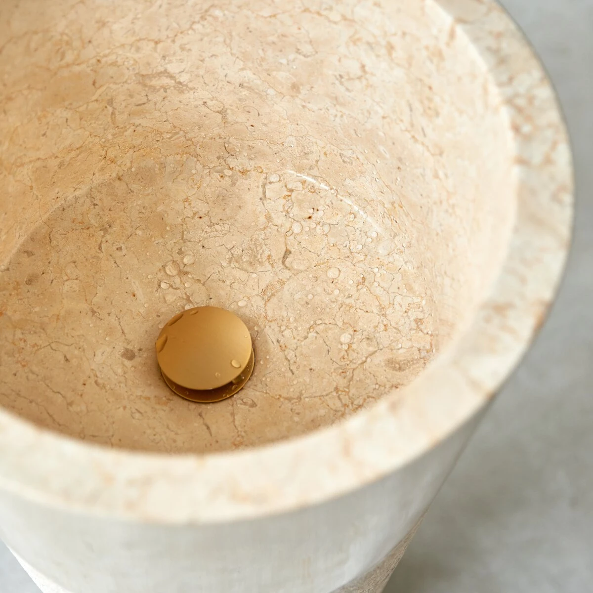 Magnifique vasque sur pied. Pièce artisanale dont la partie supérieure est en marbre lisse et le socle taillé dans la masse.