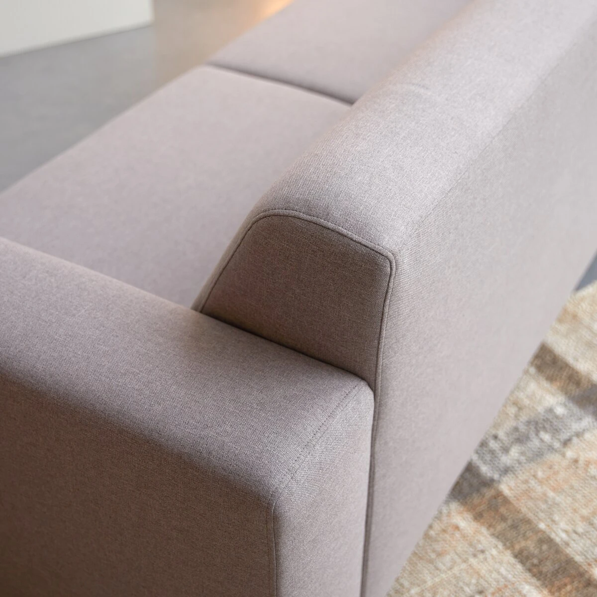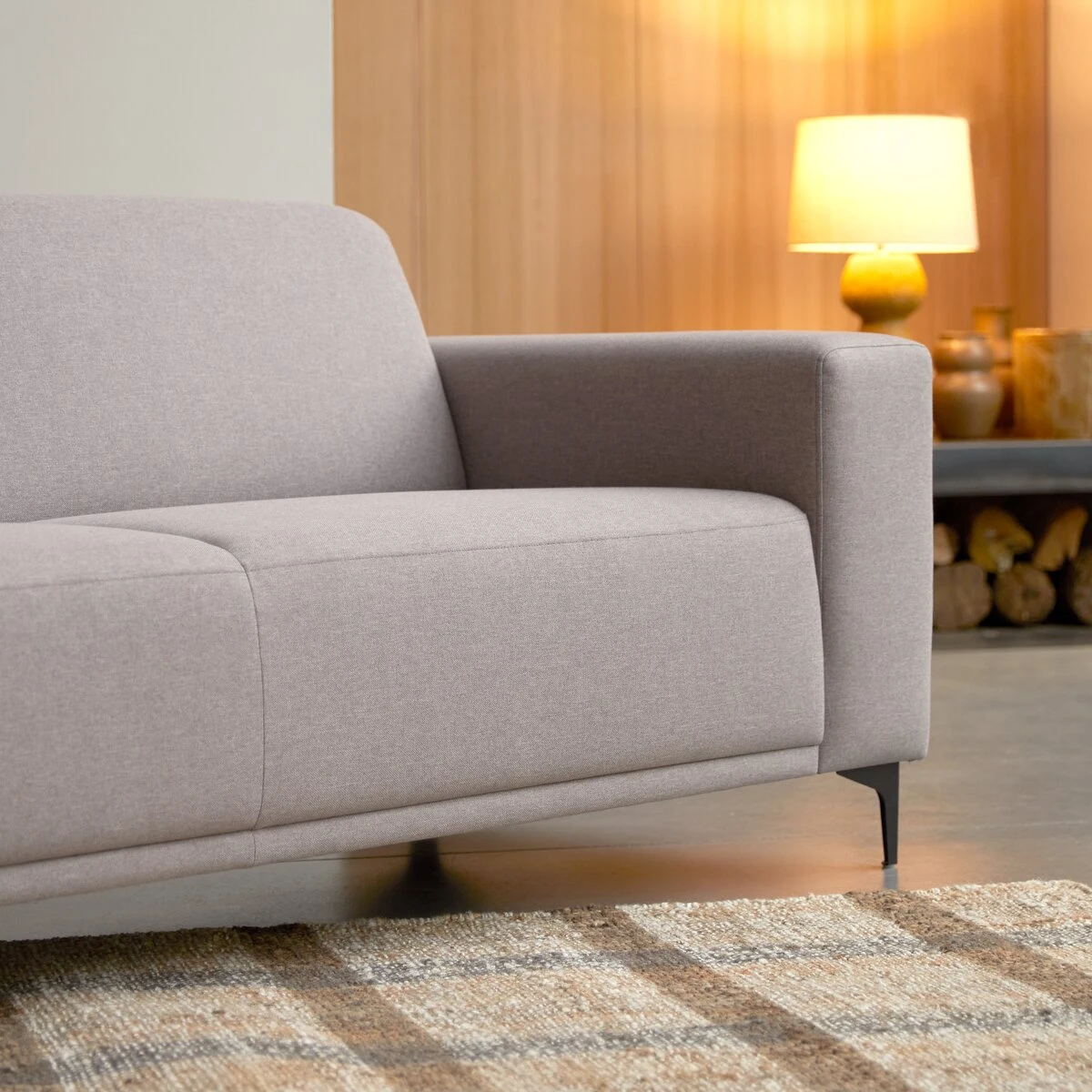 Allure contemporaine et sobriété de lignes pour le canapé Lars. Travaillé dans un tissu tissé fin pour être tout doux, durable et certifié OEKO-TEX® – ce qui garantit l’absence de substances ou de produits chimiques nocifs – il offre des pieds fins en métal. Son coloris gris et son minimalisme permettent de le marier avec tout type de décoration intérieure. Le canapé Lars existe aussi en écru.