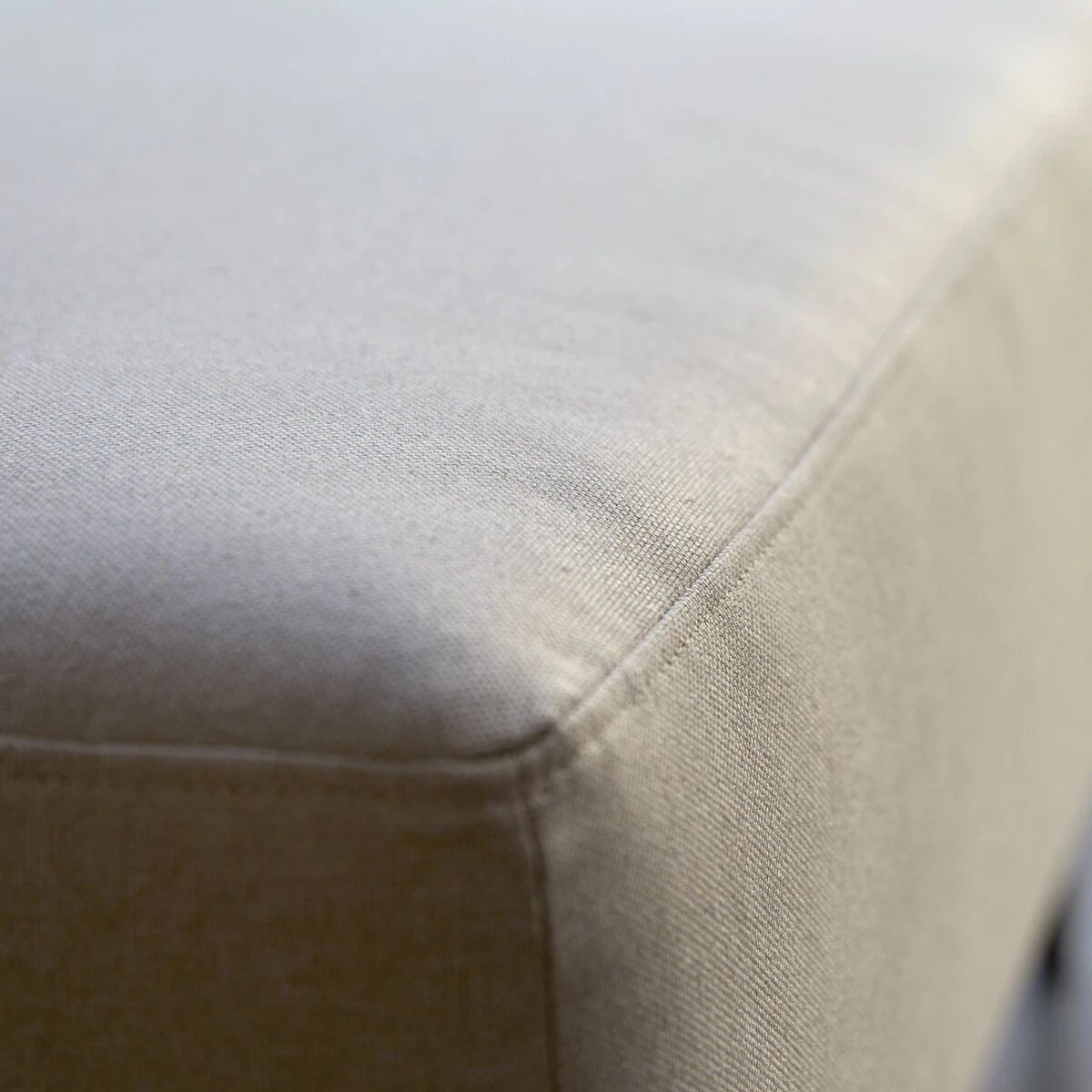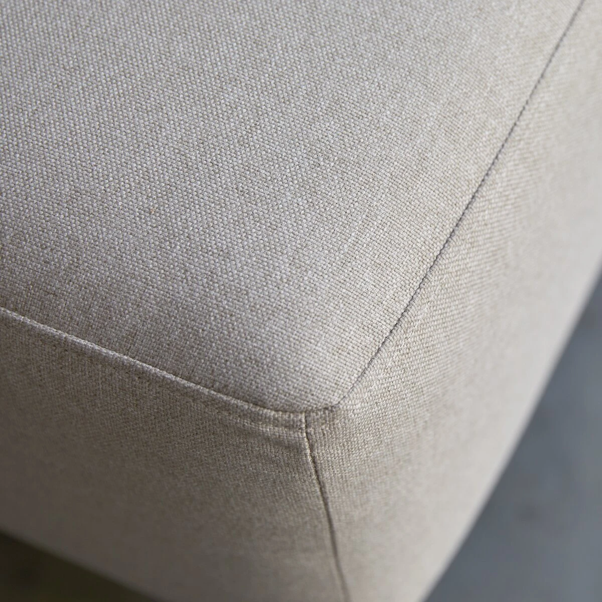 Le repose-pieds en tissu écru Lars peut être combiné avec les canapés d’angle et le canapé droit de la même gamme