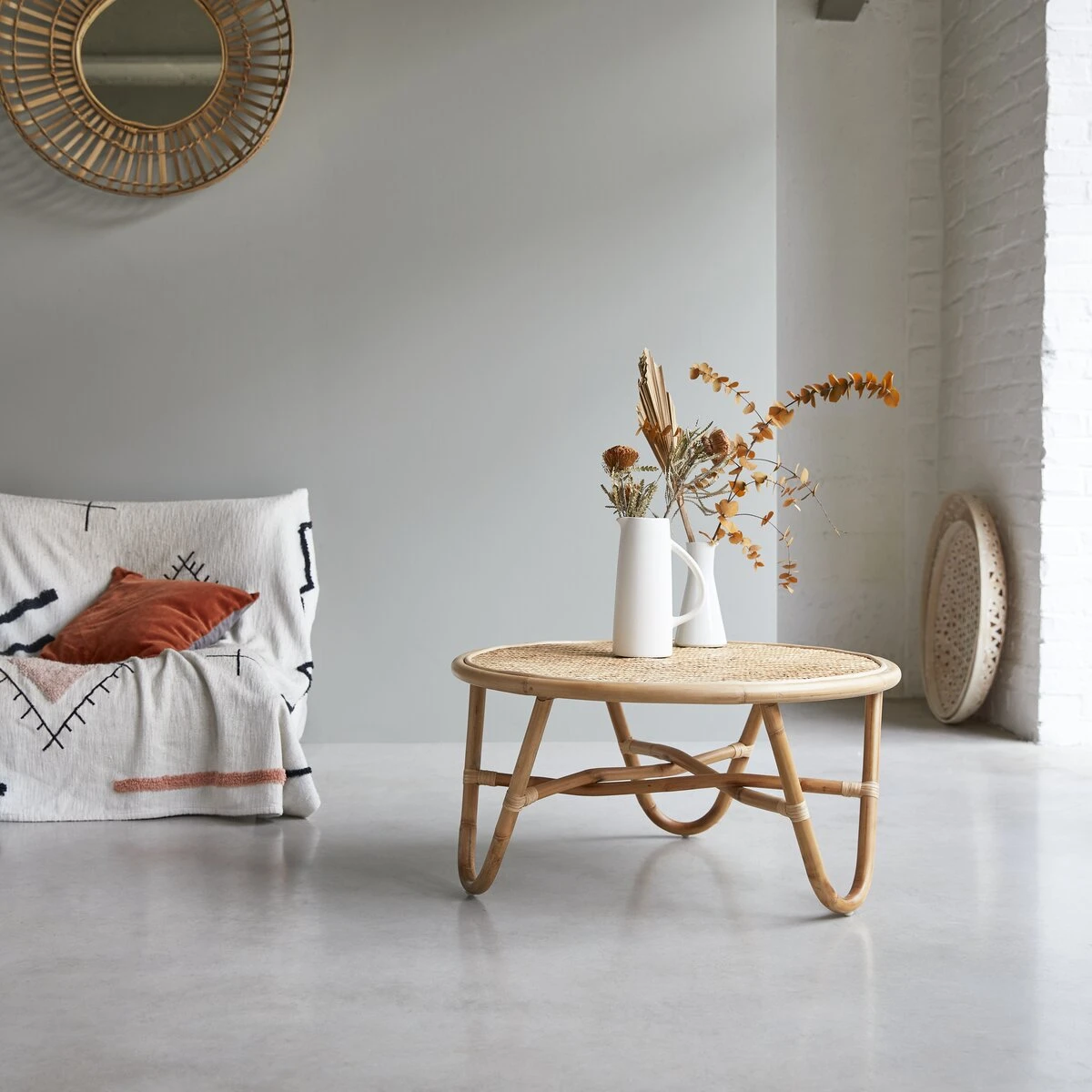 La table basse en rotin Lina trouve sa place partout dans la maison : au salon, au bureau, dans une entrée pour déposer sac et clés même dans la chambre…