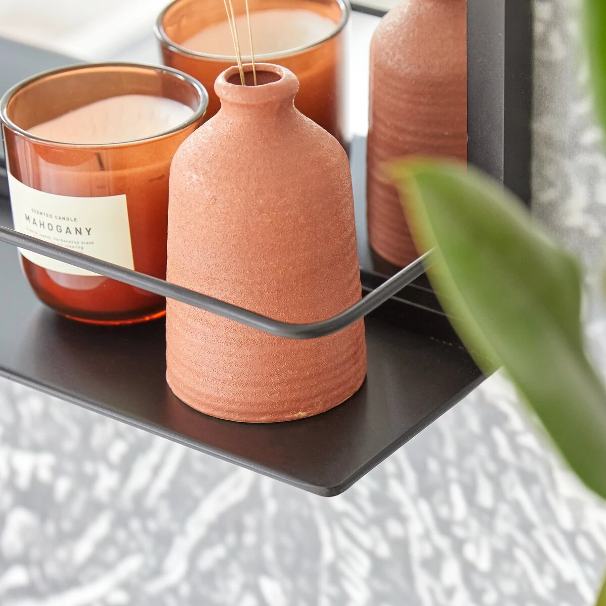 Quelques éléments de déco installés sur sa tablette offre un joli jeu de reflet… Idéal aussi pour poser les clés ou les petits objets du quotidien.