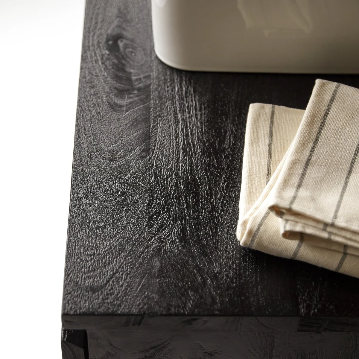 Singulier et robuste, le manguier offre une large palette de tonalités et des veinures apparentes. D’une belle densité, il est considéré comme un arbre à fibres dures, donc solide et résistant. Le manguier est un modèle de protection de l’environnement : il n’est exploité qu’une fois arrivé à maturité.