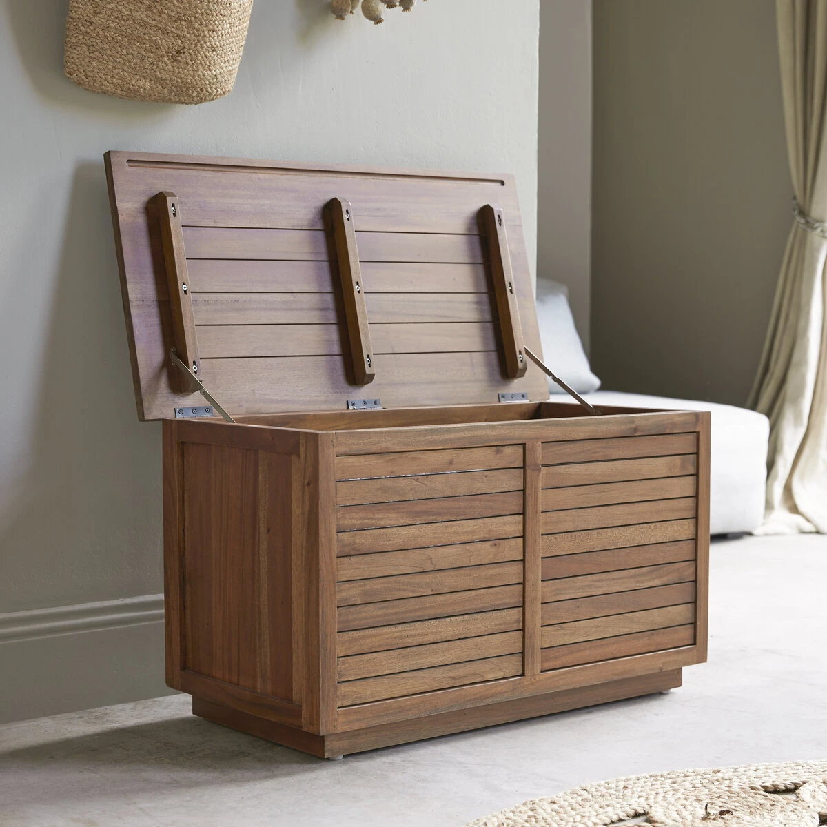 Le coffre en acacia massif certifié FSC® Loggia, un bout de lit très pratique pour ranger draps, couettes et oreillers… qui devient coffre à jouets dans la chambre des enfants, coffre à linge de table au séjour, coffre à tout faire dans la pièce que vous lui choisirez !