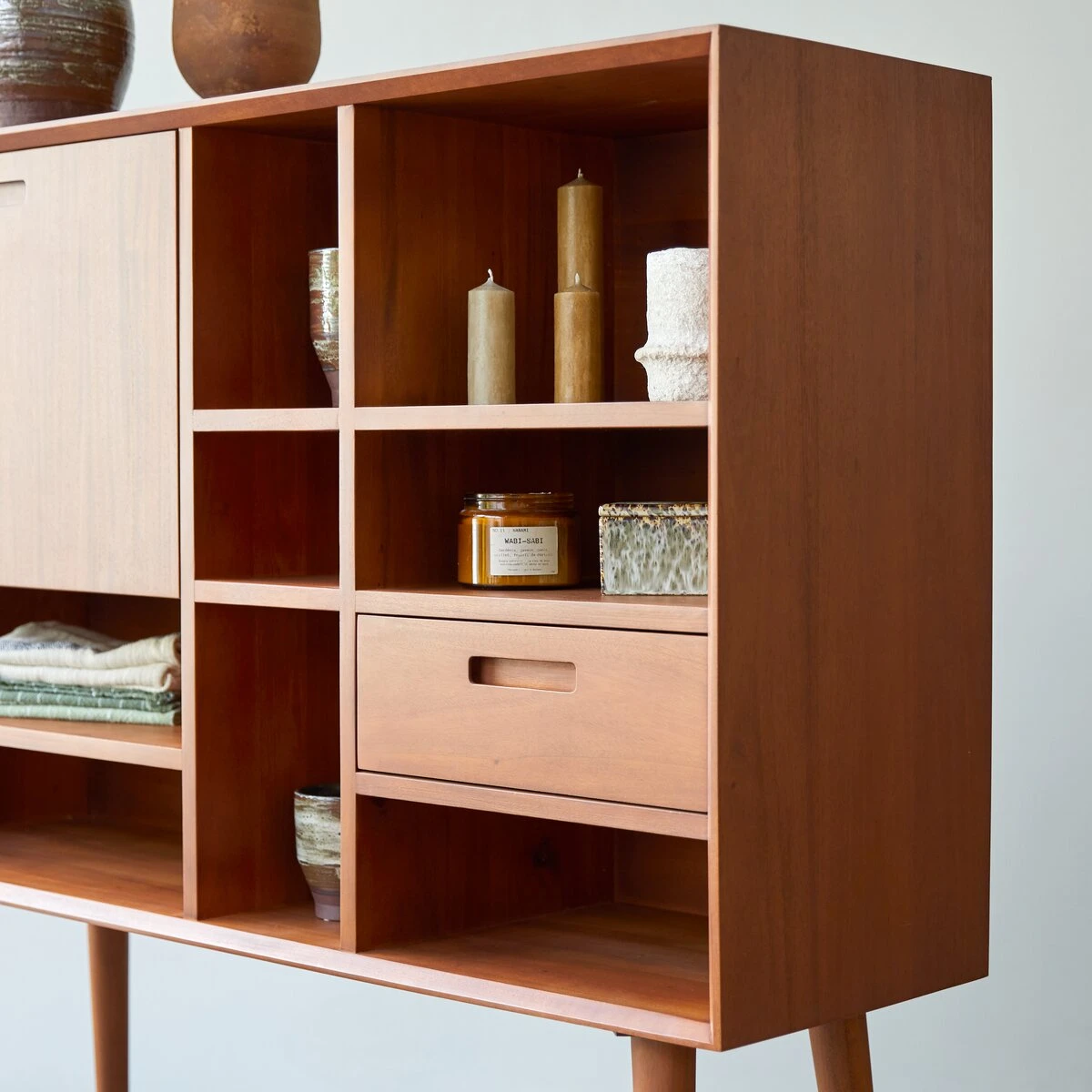 Complétez notre bureau haut Magda 50’s par des meubles de la collection éponyme pour un salon design et moderne.