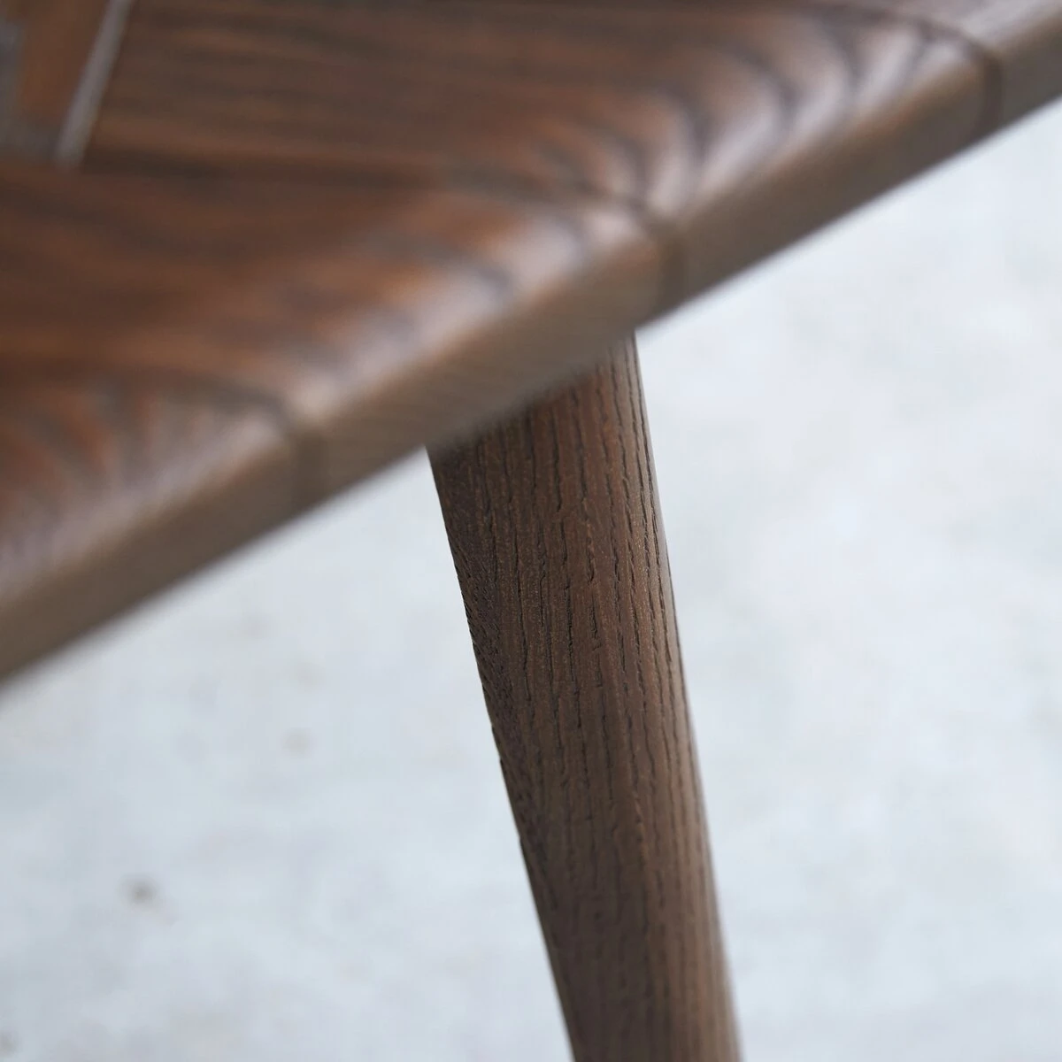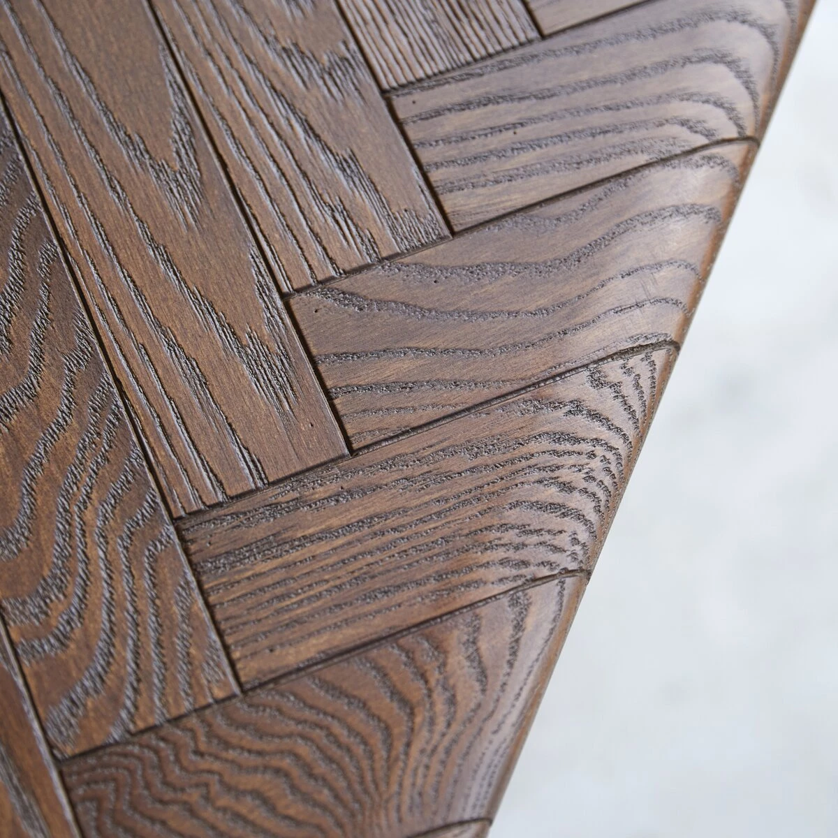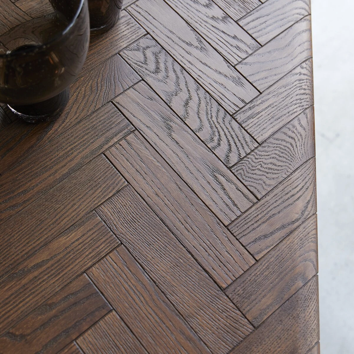 Un plateau magnifiquement travaillé façon chevrons pour la table Mahkah en chêne massif signée Bleu Nature !