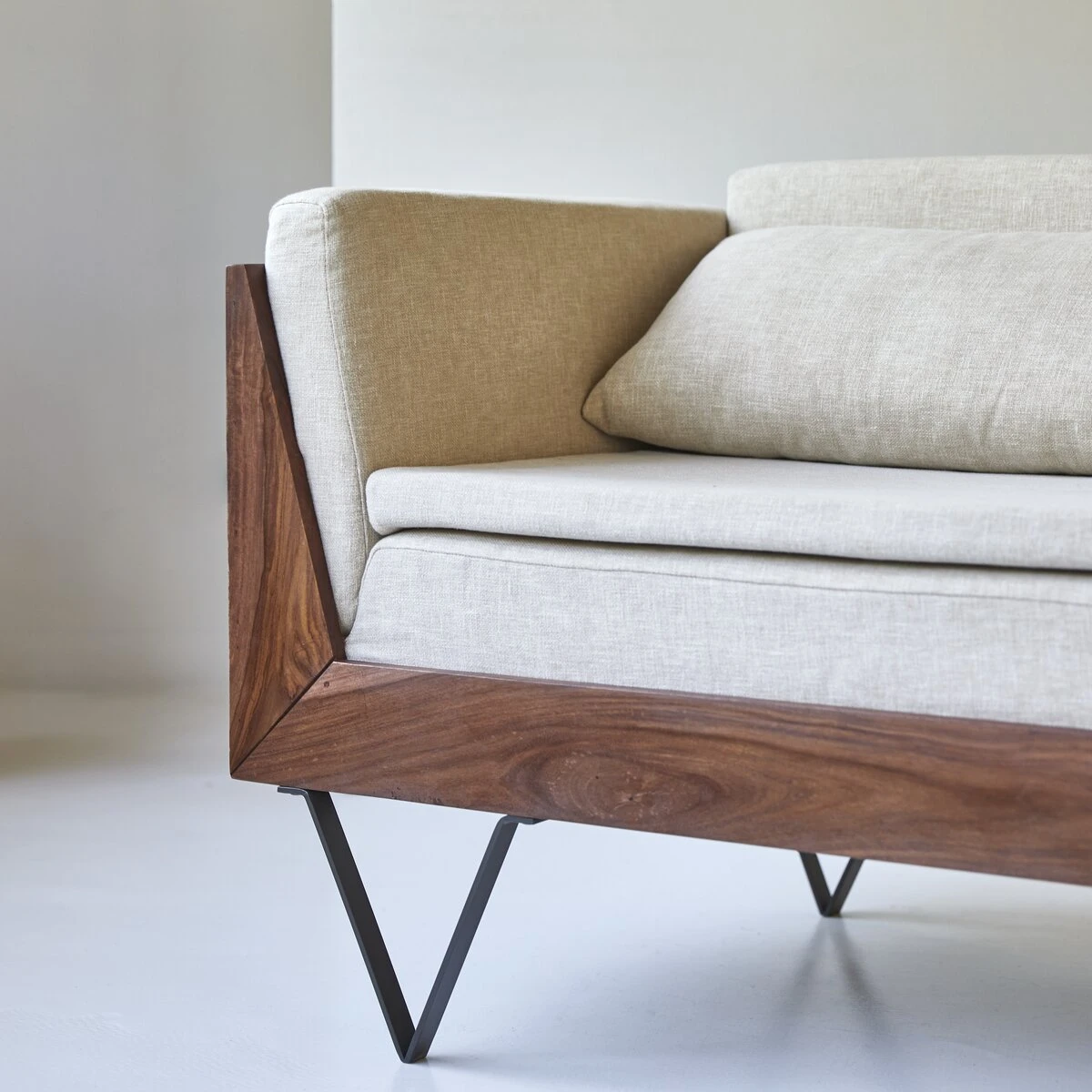 Le canapé Metric en palissandre massif et tissu écru séduit par la beauté du bois aux tonalités chamarrées et veinures apparentes… et par son élégante sobriété. On aime sa ligne minimaliste, son design strict adouci par les assises bien confortables en tissu et l’originalité des pieds « épingles » qui en accentuent l’esprit graphique. Singulier, le canapé Metric modernise un salon à la déco plutôt classique ou accentue l’esprit contemporain d’un intérieur en s’associant à une table de salon moderne comme la table Niels en palissandre massif.