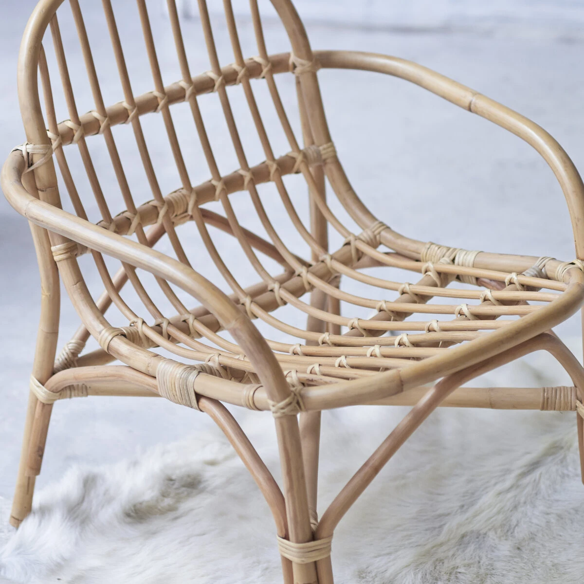 Invitation à l‘évasion grâce à notre assise à accoudoir Mina en rotin naturel vernis.