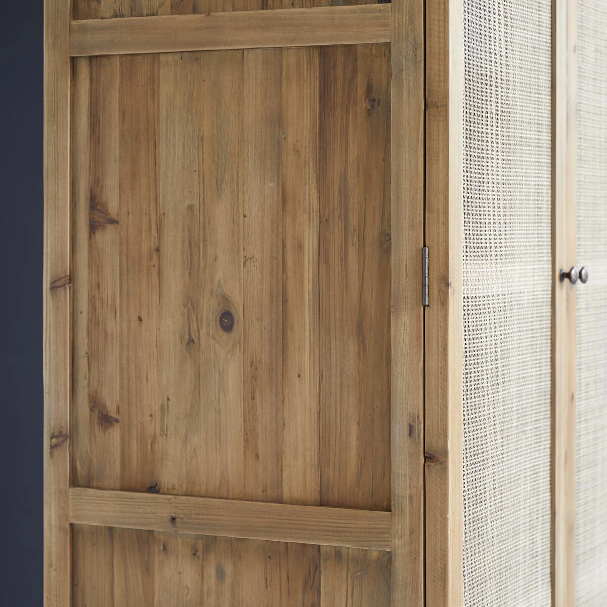 La sobriété de l’armoire en pin et rotin Ninon permet de nombreuses associations de style : combinez-la à votre déco existante ou associez-la aux meubles de notre collection néo-ethnique.