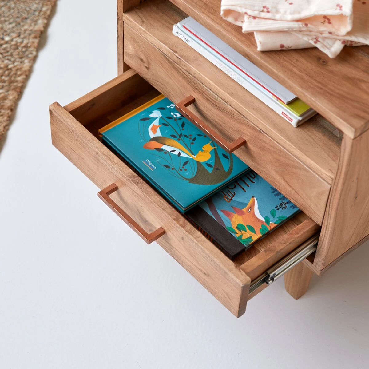 Le chevet en acacia massif Oslo compose une chambre à coucher d’inspiration scandinave associé à la commode en pin massif Oslo et au bureau en pin massif Oslo : un style de déco qui ne perd rien de son charme au fur et à mesure que l’enfant grandit. Verni pour être facile à vivre.