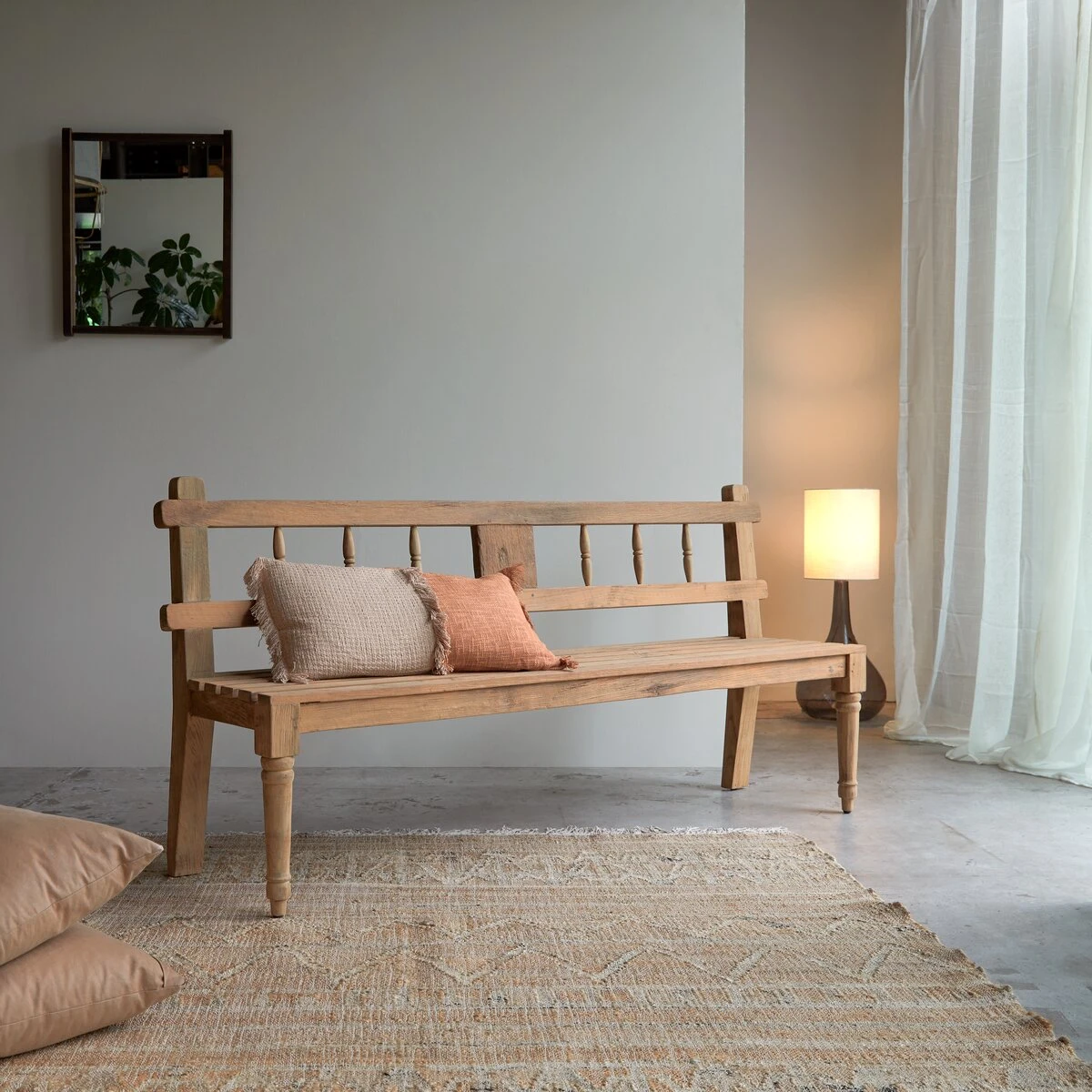 S’il est parfait pour réveiller la déco intérieure, le banc en teck massif recyclé Paula peut aussi être installé sur la terrasse ou le balcon.