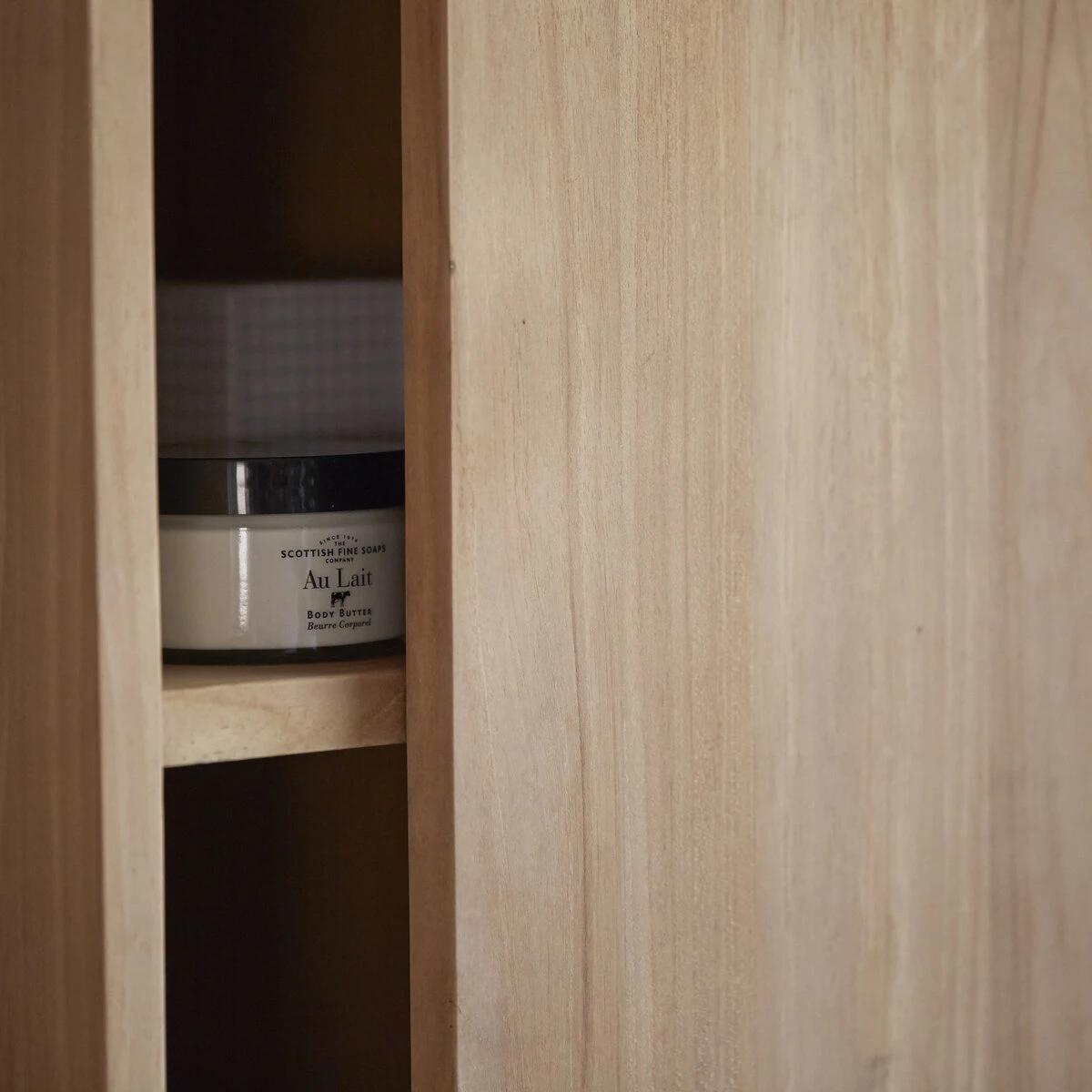 Charmante colonne de salle de bain suspendue en teck massif certifié FSC®.