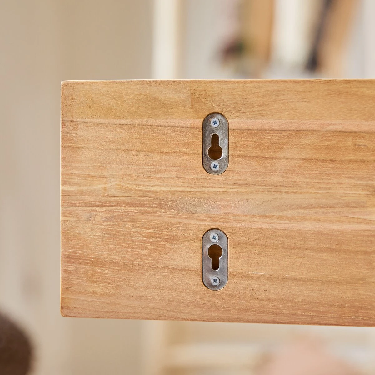 L’étagère murale en teck massif Ugo 100 peut aussi s’installer dans l’autre sens pour devenir sèche serviette dans le coin lavabo de la chambre… On l’apprécie aussi dans la salle de jeux ou dans le bureau des plus grands.