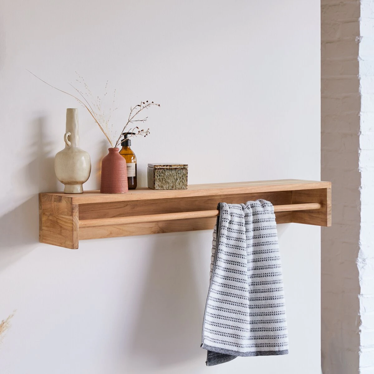 Design et astucieuse, l’étagère murale de salle de bain en teck massif certifié FSC® Ugo 100… une 2 en 1 bien pratique !