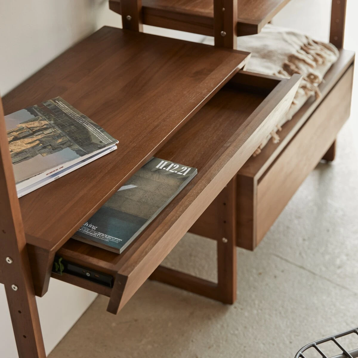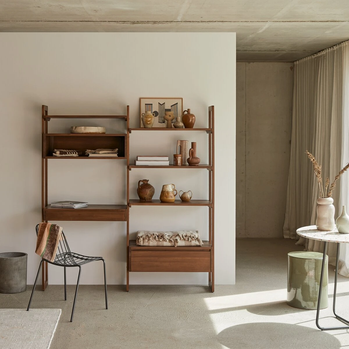 Cette bibliothèque en teck massif est une pièce de style Scandinave très actuel, qui joue la séparation de pièce au gré des besoins ou des envies. De finition très soignée, les bibliothèques Wall sont travaillées en teck exotique et résistant : une ligne de meubles dont on apprécie jour après jour la fonctionnalité et l’esthétique sobriété.